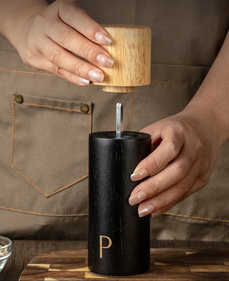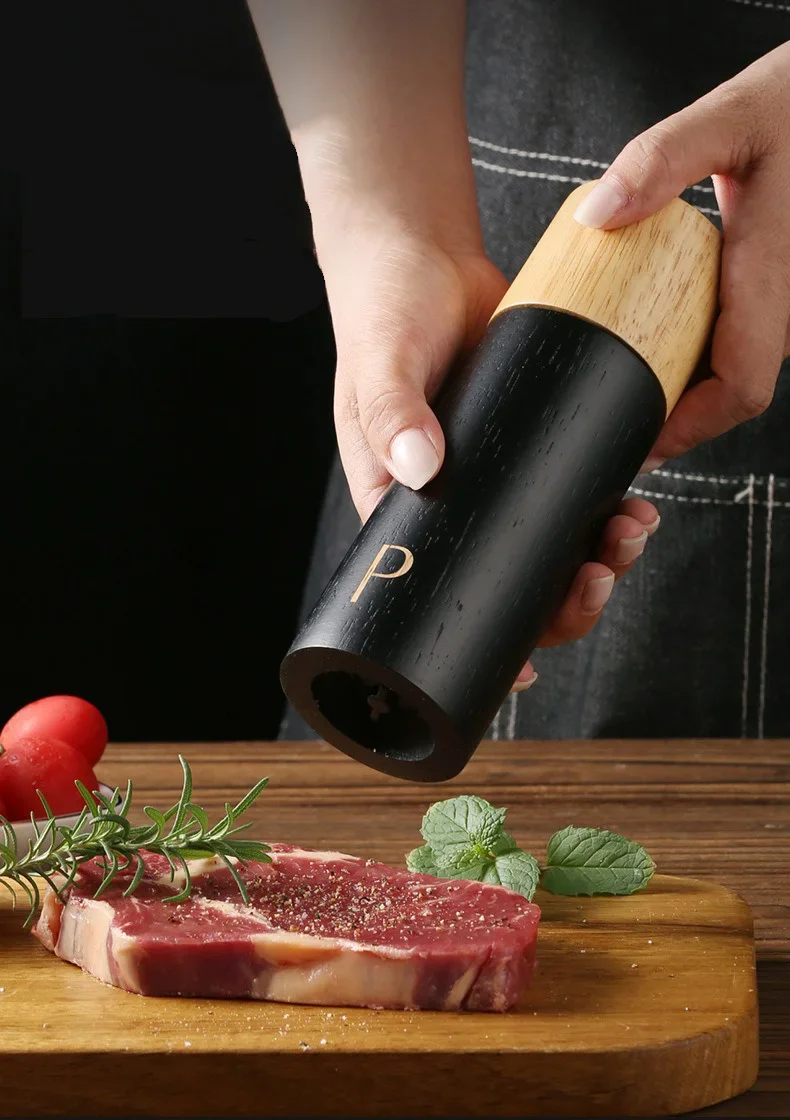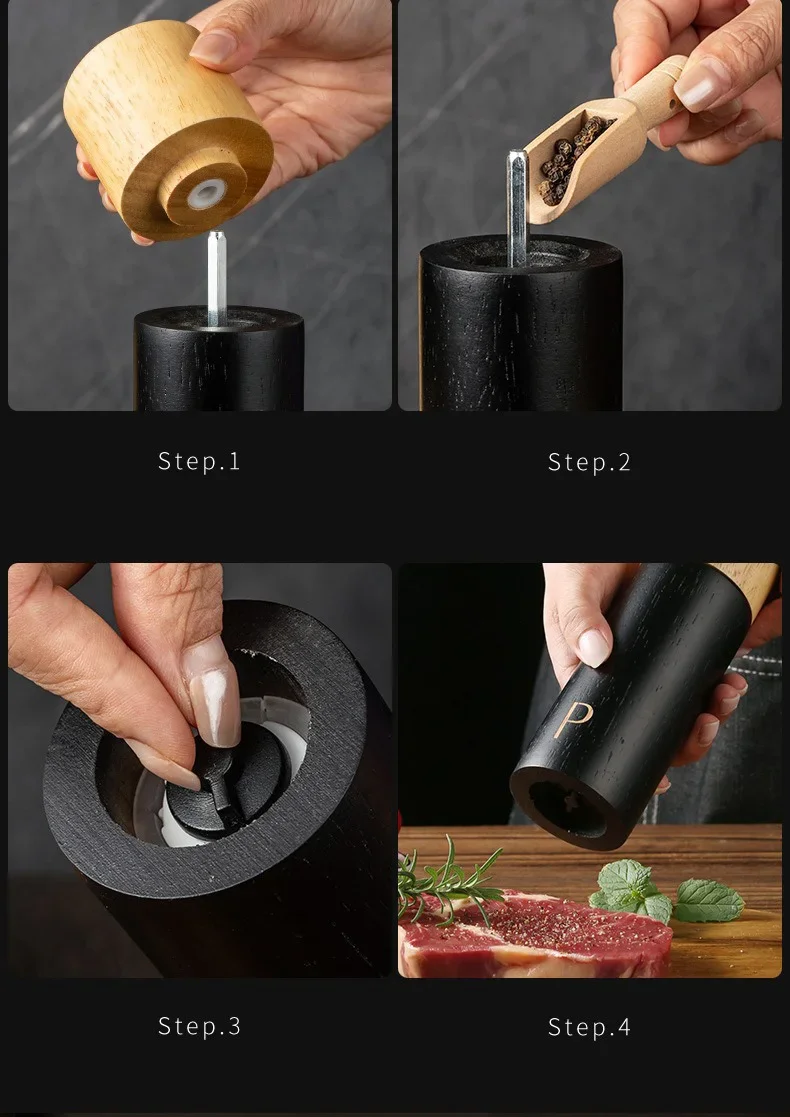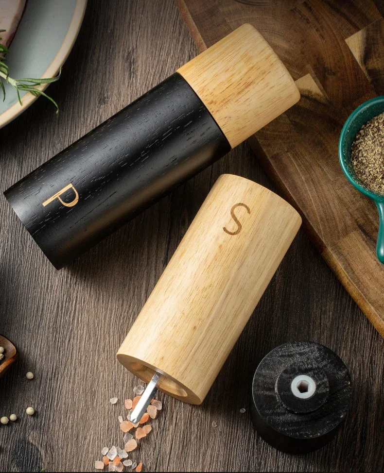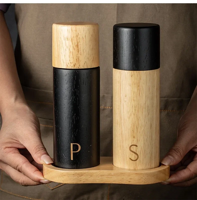 7-inch Wooden Salt and Pepper Grinder Set Manual Spice Black Pepper Grinder Adjustable Ceramic Core with Base Kitchen Gadgets